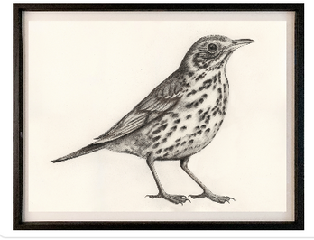 The bird drawings are sold framed in Black Ash and are ‘float framed’ on either a near white or a black mount.